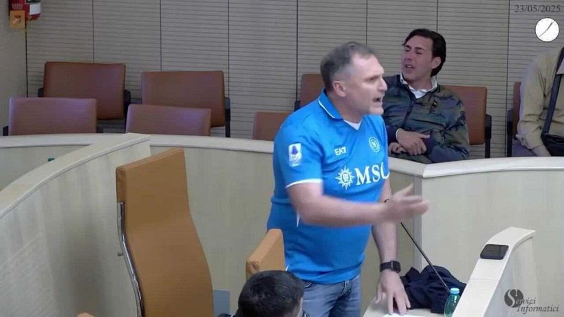 Gennaro Giustino, consigliere comunale ad Afragola, durante la seduta consiliare ha mostrato la maglietta del Napoli e ha abbandonato l’Aula per andare a festeggiare il quarto scudetto della sua squadra del cuore. Ha rivolto anche un discorso polemico nei confronti del sindaco Antonio Pannone: “Siamo qui solo perché è juventino e leghista, ma noi abbiamo un appuntamento con la storia”. (NPK) Fonte: YouTube Afragola Tv