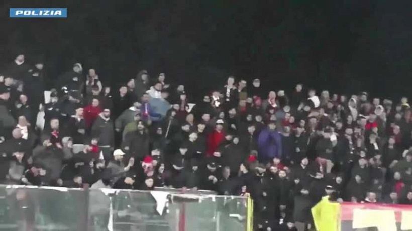 Durante le fase iniziali della gara ma, in particolare, appena concluso il primo tempo della partita, i tifosi coinvolti nei tafferugli ingaggiarono un reciproco lancio di pietre ed oggetti, disintegrando perfino pezzi di calcestruzzo degli spalti e dei rivestimenti dei bagni, accendendo e lanciando fumogeni e petardi, introdotti illegalmente nell’impianto eludendo le operazioni di filtraggio a cura degli steward.