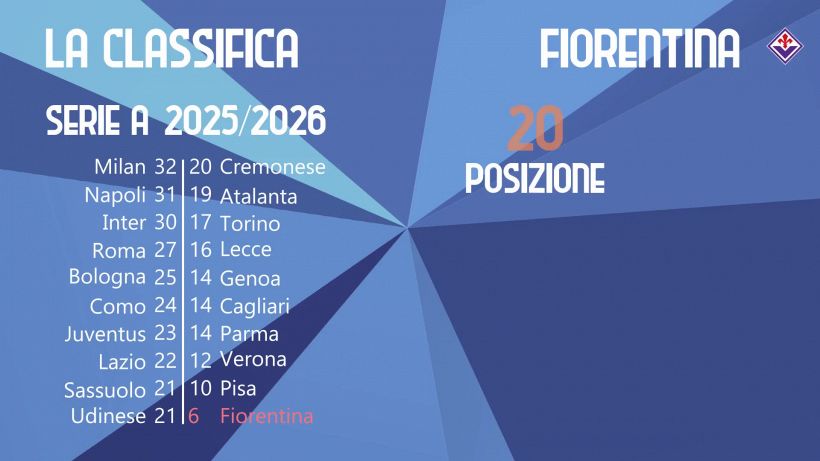 Ma la sconfitta della Fiorentina a Losanna non ha causato danni soltanto nell’ambiente viola. Anche il ranking Uefa del calcio italiano ha accusato il colpo causato dal k.o. della squadra di Vanoli con gli svizzeri: l’Italia è ora al quinto posto con 11.250 punti, dietro addirittura a Cipro che ne ha 11.406. Una brutta notizia soprattutto per le squadre in lotta per un posto in Champions League, che sperano che la serie A ottenga un quinto slot per la qualificazione.